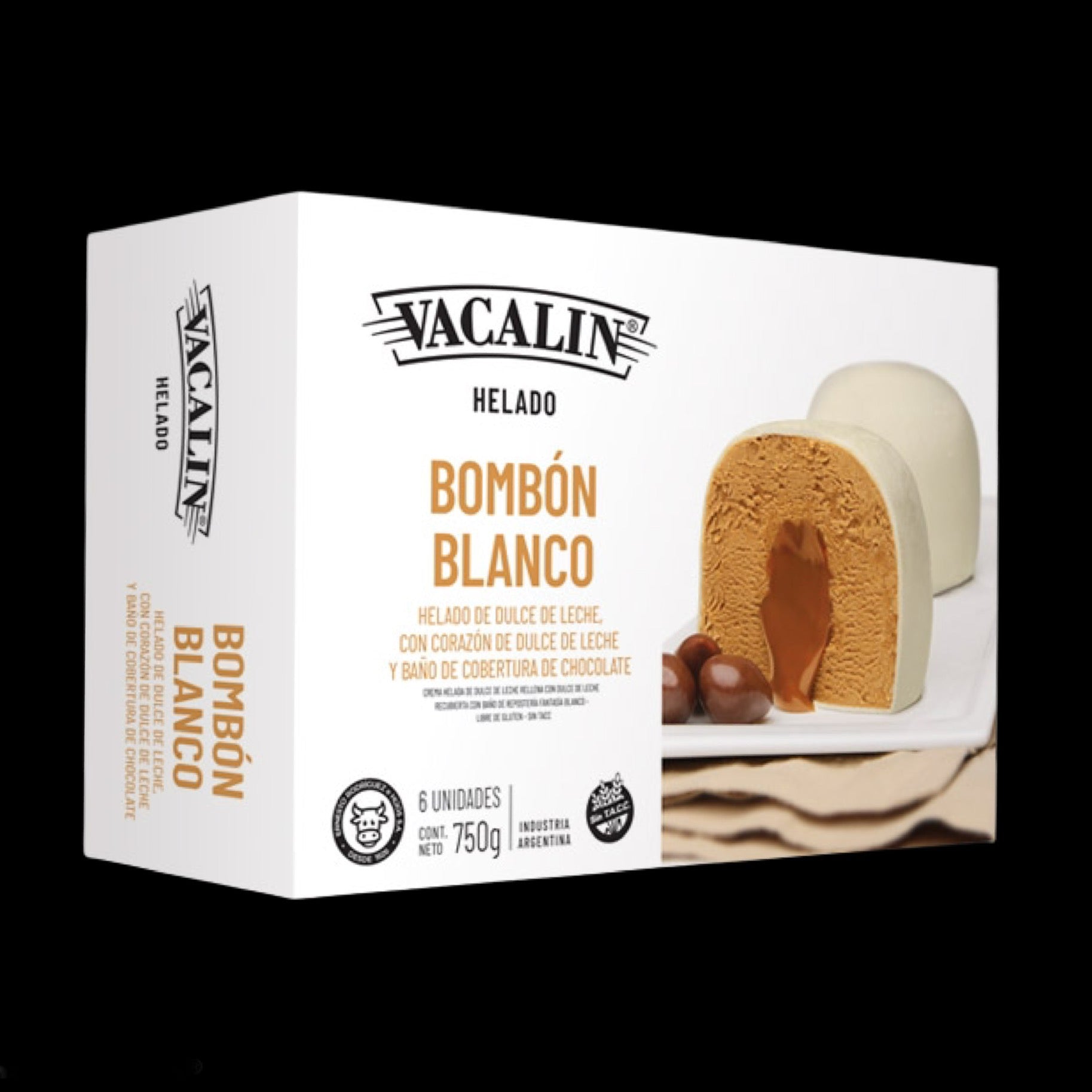 Helado de dulce de leche, con corazón de dulce de leche y baño de cobertura de chocolate.
